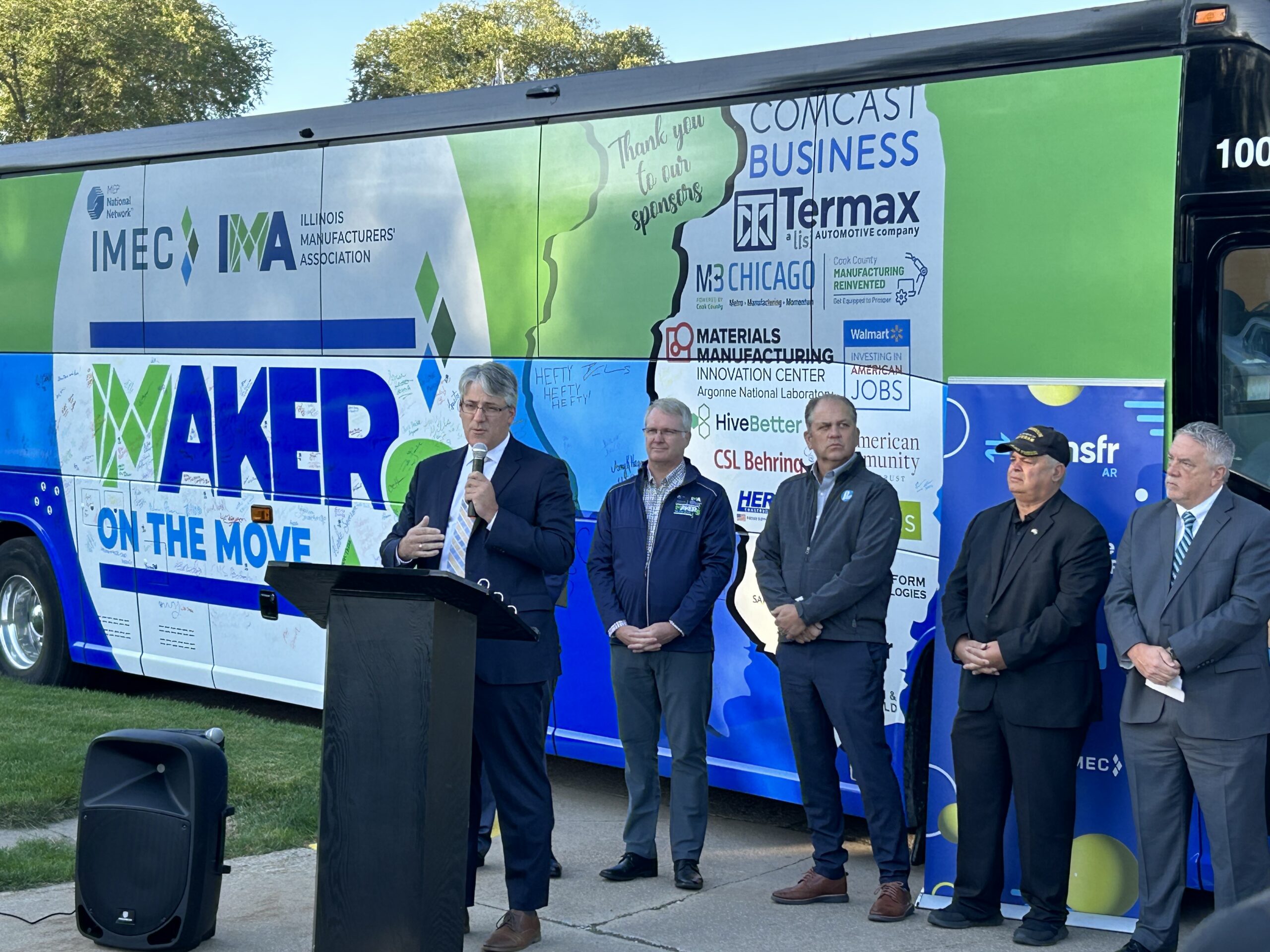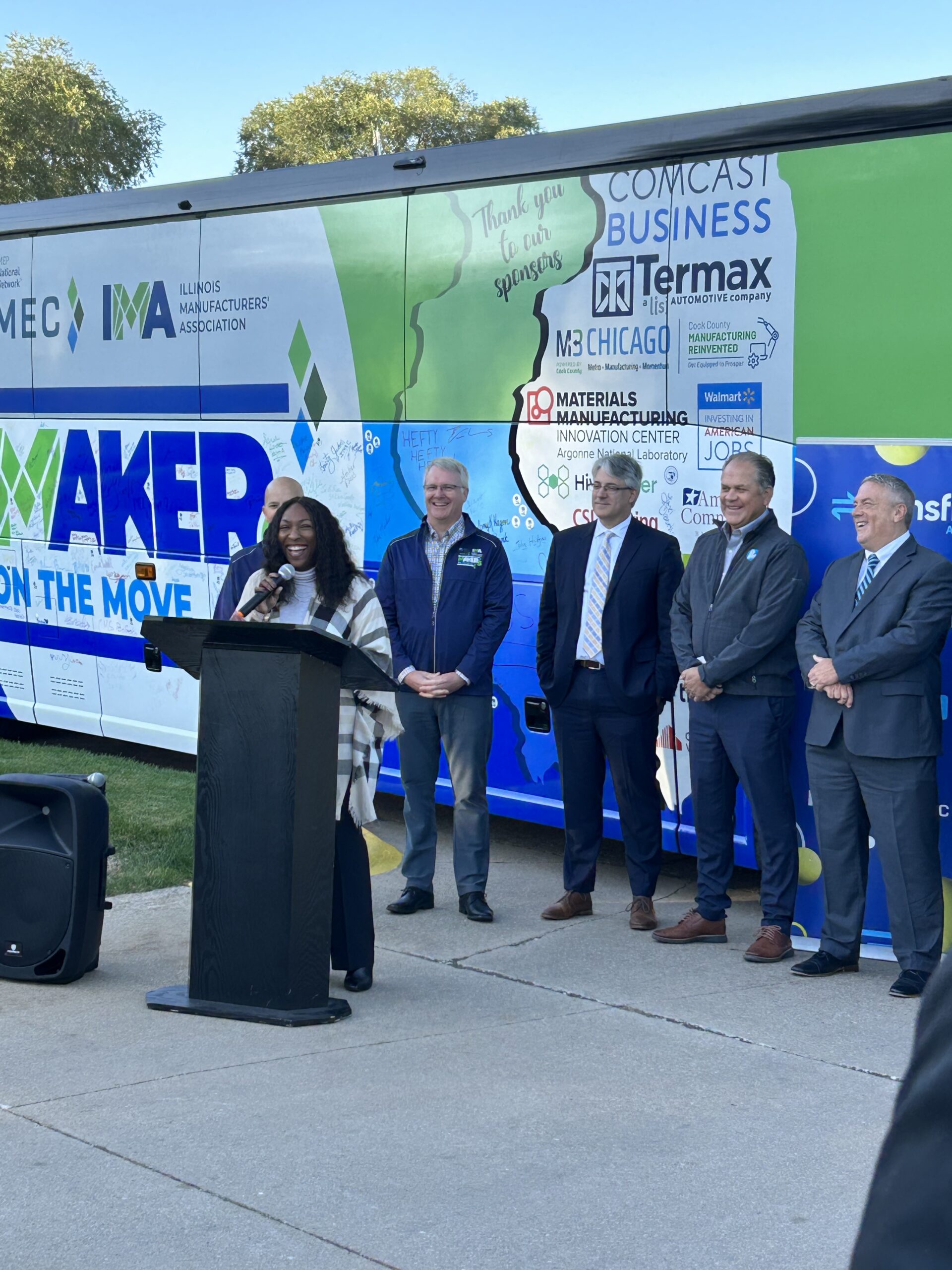 Parr Instrument Company is honored to be part of the Illinois Manufacturers’ Association and IMEC’s Makers on the Move tour for Manufacturing Month. Mark Denzler with IMA, David Boulay with IMEC, State Senator Michael Halpin, Representative Gregg Johnson, Representative Dan Swanson, LaDrina Wilson from the Quad Cities Chamber of Commerce, Parr’s President & CEO Jim Nelson, & Parr’s Machine Shop Supervisor Nate Brown all spoke about the importance of manufacturing to businesses and our community.