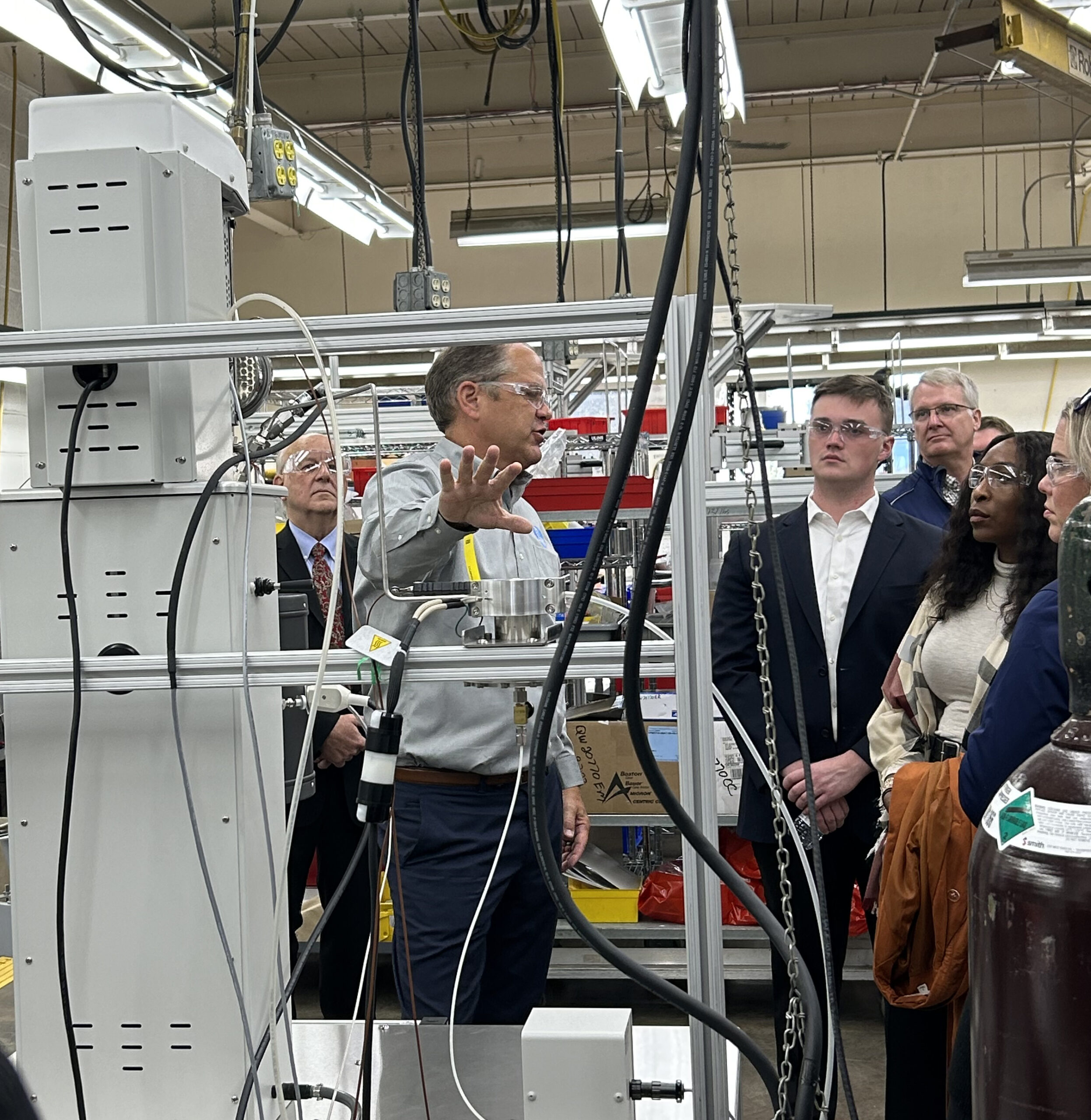 Jim Nelson and Parr’s Operations Manager, Stacey Moon led the group on a tour of Parr’s facility while providing an overview of Parr’s products and its 124-year history. Guests were able to see Parr’s skilled machinists and manufacturing team at work creating high-quality Parr reactors, pressure vessels, and calorimeters.