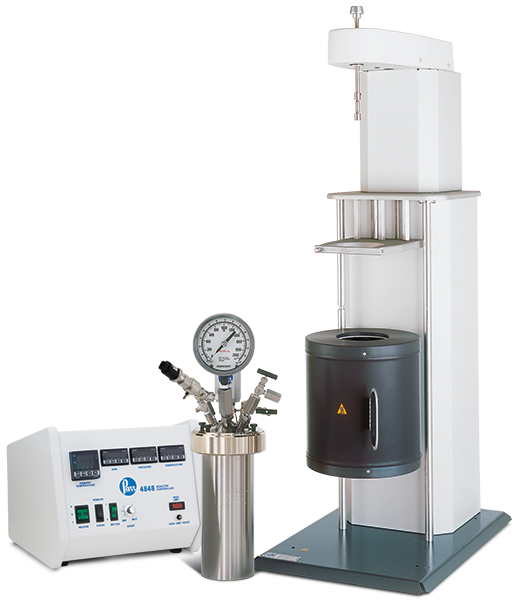 An optional HP (High Pressure) flat gasket version has been added for maximum allowable working pressure of 2900 psi (200 bar) at 350 °C. Both fixed head and moveable vessel designs are available. An optional pneumatic lift is available for the heavier 2 liter cylinder and heater. It should be noted, however, that the 2 liter, fixed head model is tall and may not be convenient to operate on a standard height bench top. We recommend using a floor stand. (See Series 4530)