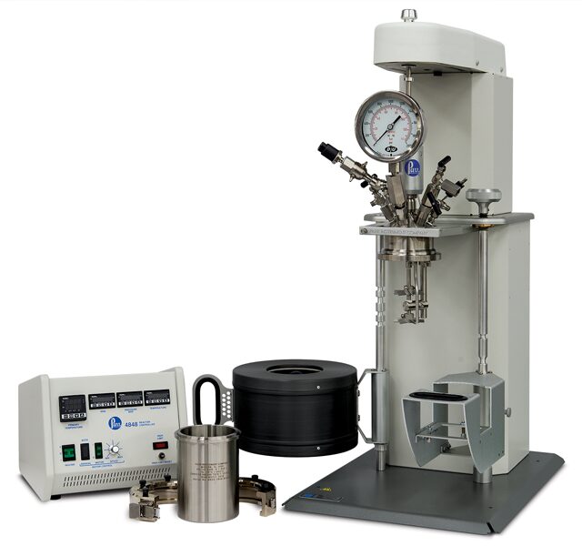 The standard magnetic stirrer drive on these 4520 Models works well for reaction mixtures with viscosities up to 25,000 centipoise. For heavier stirring loads, these reactors can be equipped with larger magnetic drives, more powerful motors, and drive trains capable of delivering additional stirring torque.