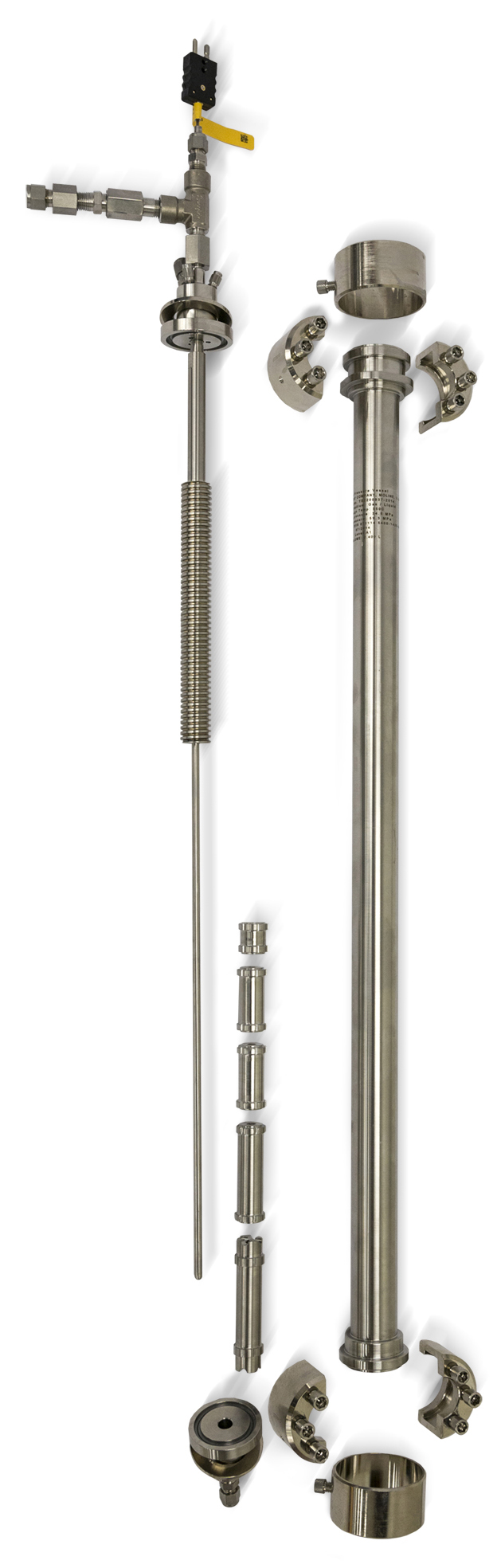 - Reactor ID's from 0.25" to 1.5" (7 to 38 mm), with lengths of 12" (300 mm), 24" (600 mm), or 36" (900 mm)